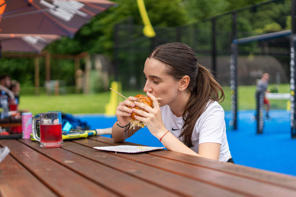 Pohodová venkovní zóna pro odpočinek po hře. V létě ideální pro drink nebo burger.